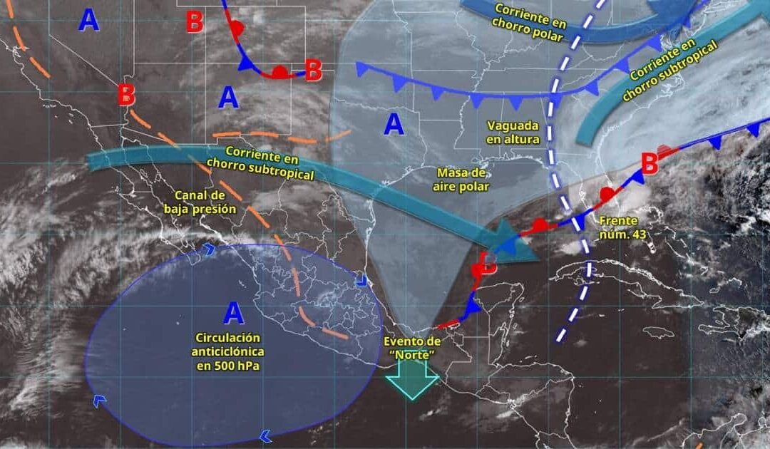 En el norte del país, el ambiente se mantendrá mayormente seco, aunque no se descartan vientos fuertes con tolvaneras en ciertas entidades. Por otro lado, una circulación anticiclónica en niveles medios de la atmósfera propiciará temperaturas elevadas en varias regiones, especialmente en el occidente y sur de México.
